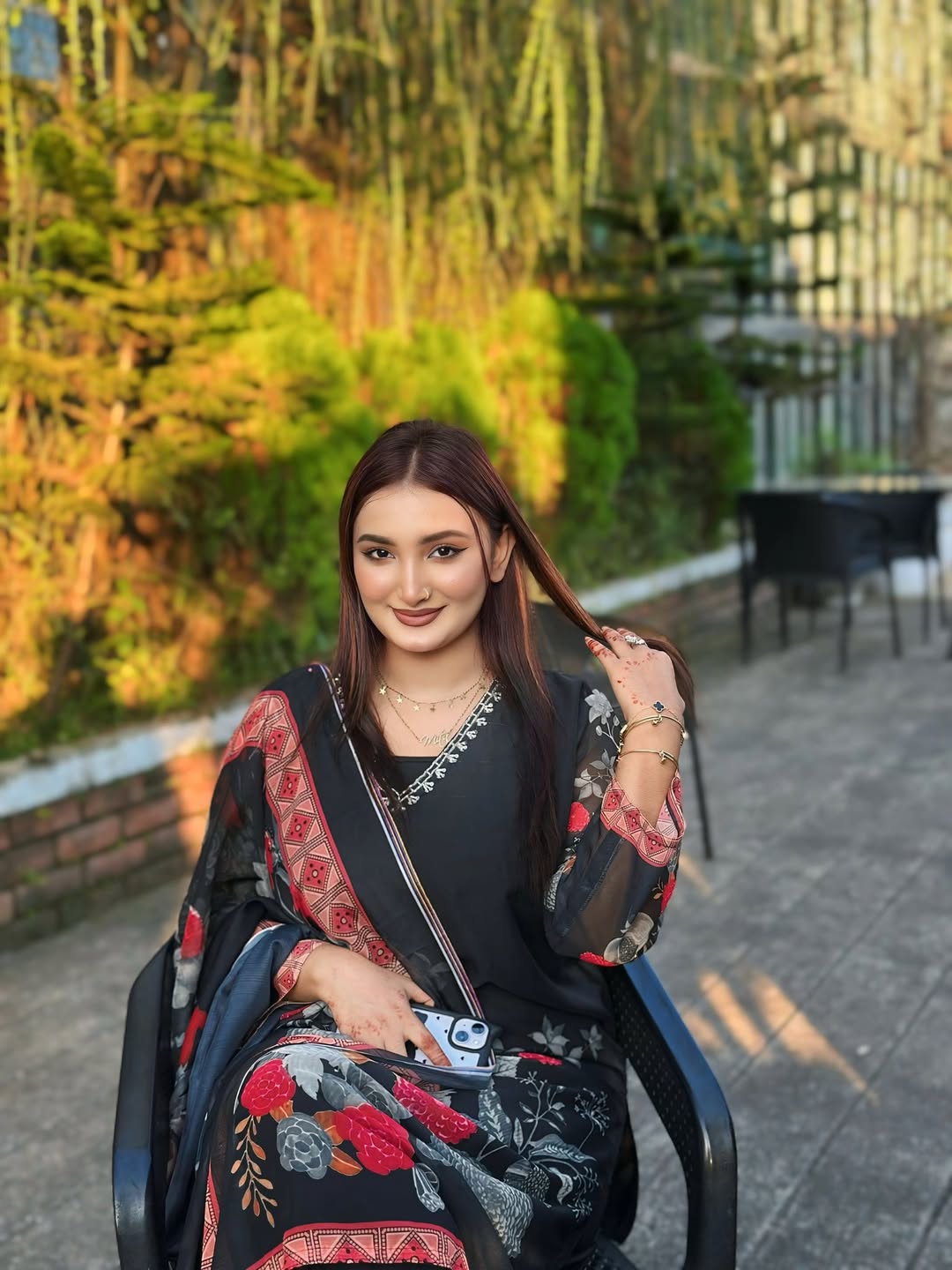ব্ল্যাকের ভেতর যখন লাল আর সাদা ফুলেরা গল্প বলে— তখন সৌন্দর্য শুধু দেখা যায় না, অনুভব হয়… আর আজ সেই অনুভূতির নাম তুমি। Fabric : Jorjet ( inner added) Pant : silk ( inner added) orna : jorjet Size : - M- (36-38) L -( 40-42) XXL-(44-46) Dress length : 44 Pant length : 39/40